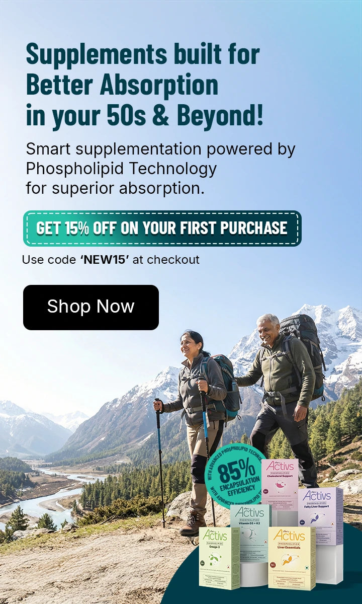 Each Meru Activs™ product is crafted through meticulous research and in close collaboration with leading doctors, scientists, and nutritionists who specialise in the needs of people in their 50s and beyond. Designed for those entering their second innings, our supplements go beyond generic solutions. Every ingredient, process, and claim is fully transparent, so you can support your wellbeing with confidence and targeted precision.