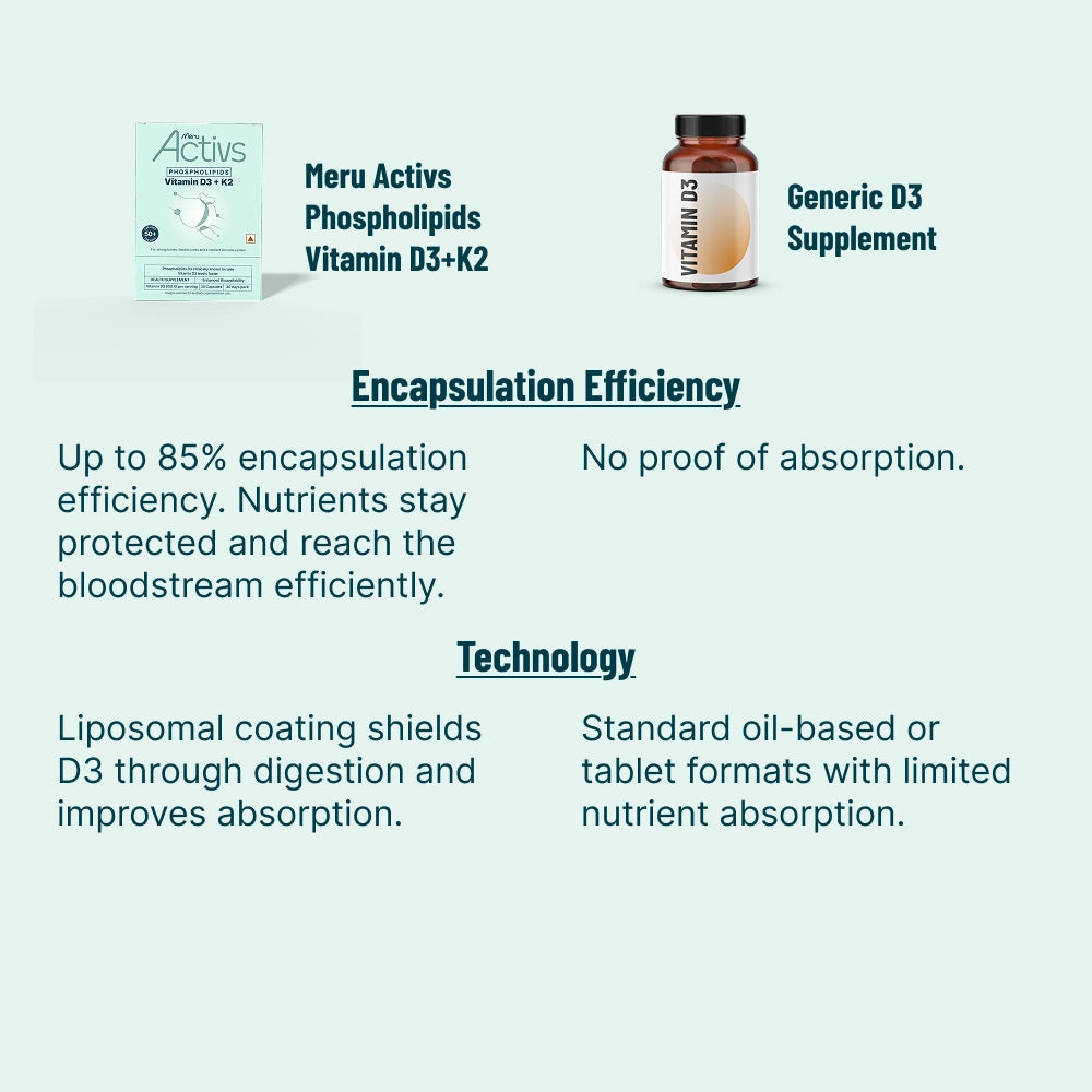 Liposomal encapsulation helps D3 survive digestion, increasing absorption into the bloodstream.
